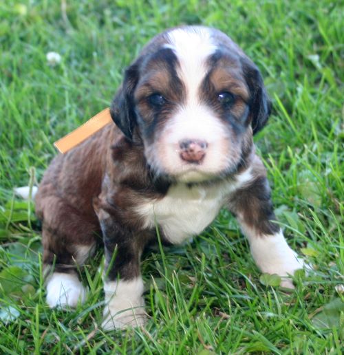 We sure are growing! We are now just starting to play and intermingle. So cute! And we are getting a little outdoor time too. We use newspapers now and are going potty on the papers. Soon we will be going potty outside. We will start mushy puppy food this week. But mama's milk is still number one! And we love to be held ~